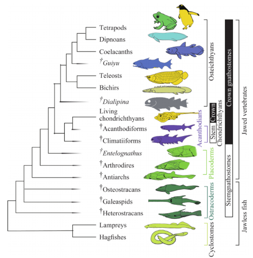 You might notice something a little funny with this diagram: it appears to entirely consist of fish… with the exception of the tetrapods. Tetrapods include all reptiles, amphibians, mammals, birds, and a whole host of extinct land animals. And this finally brings us back to the modern scientific definition of a fish (to the extent that there is such a thing), which is that a fish is any vertebrate that is not a tetrapod.