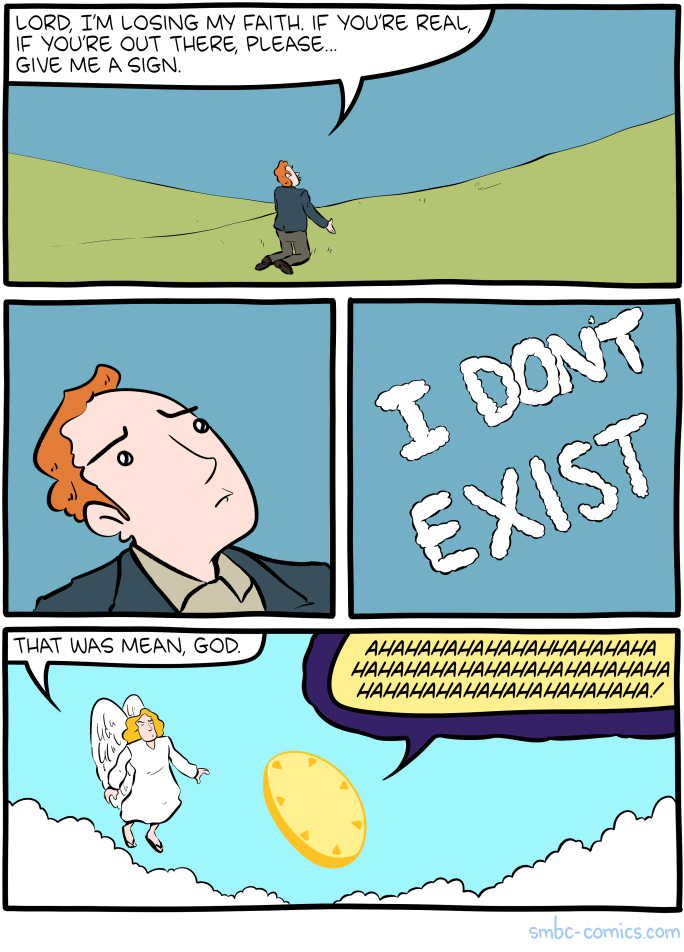 But a more entertaining possibility is that Zach’s God is lying to mess with the human. It wouldn’t be the first time.
